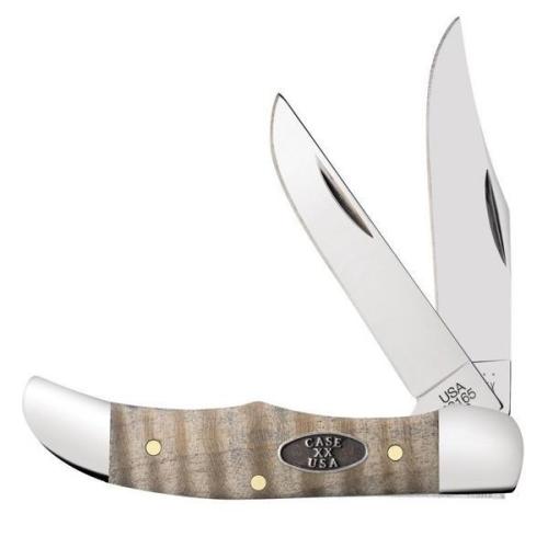 A naturally rippled maple eye burl pattern wraps this smooth wood handle
